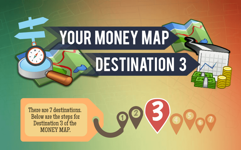 The money map is easy to follow and is a step by step guide that will work for you regardless of your income. The infographic below explains what you need to do at Destination 3.